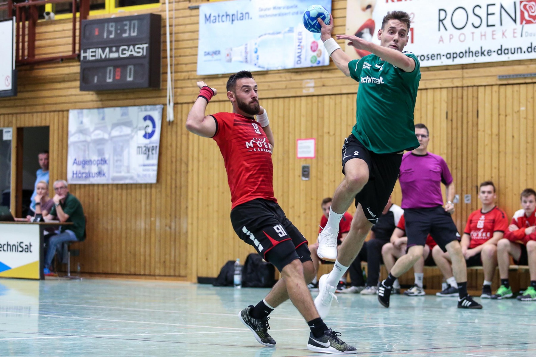 Mit einem in dieser Höhe nicht erwarteten Sieg setzte sich der TuS Daun über den Aufsteiger aus Saarburg durch, zeigte dabei dem Gast die Grenzen auf. Erneut mussten die Gäste auf ihren Neuzugang Edin Mesevic verzichten, der laut Aussage von Trainer Uwe Moske auf der Rückreise aus dem Urlaub im Stau stecken geblieben ist und so war der Rückraum der Gäste relativ leicht auszurechen.