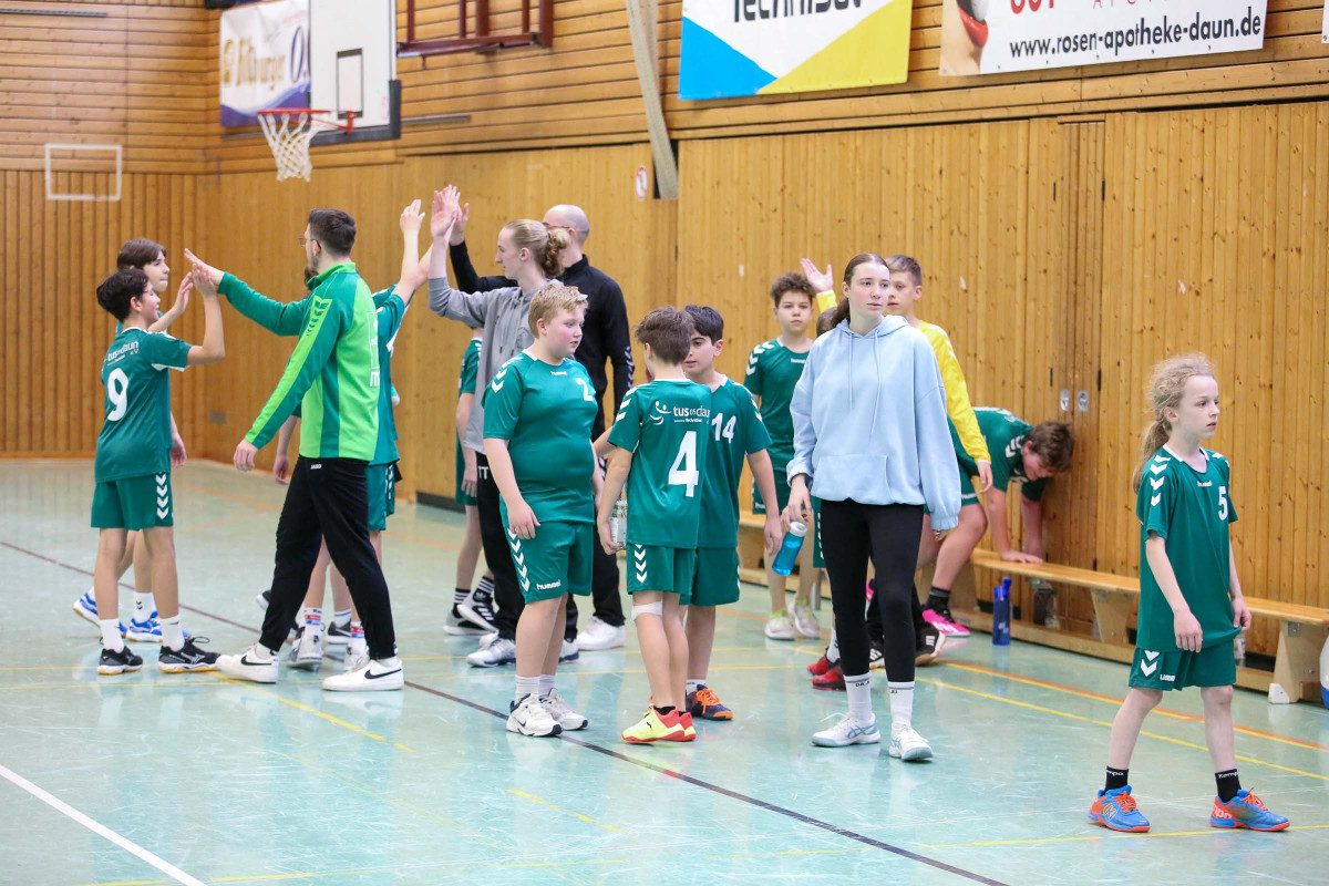 Im Angriff spielten die Jungs gut zusammen und es waren schöne Anspiele zum Kreis möglich. Leider konnten nicht alle Chancen verwertet werden. Doch in der zweiten Halbzeit setzten sie sich die Dauner Jungs ab und übernahmen die Führung. Der Biss der Jungs war deutlich zu sehen, sie wollten den Sieg! Die zweite Halbzeit verlief deutlich besser als die erste. Die Trefferquote der Dauner Jungs stieg und die Außen hatten sie in der Abwehr auch besser im Griff.