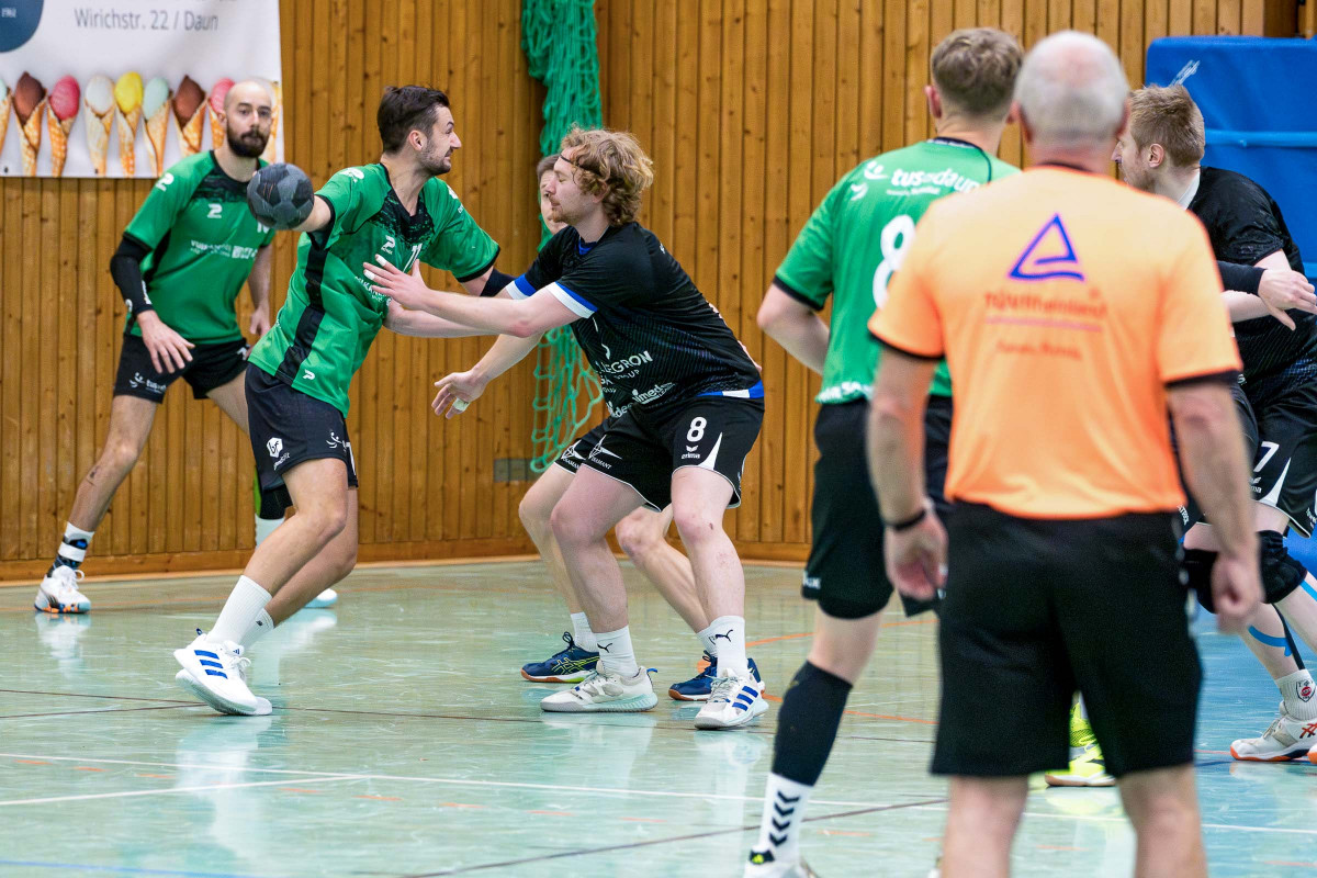 Mitte der ersten Hälfte lief das Dauner Spiel besser, die Mannschaft nutzte jetzt konsequent ihre Chancen und legte die 9:5 Führung (17.) hin, die aber beim 10:10 (25.) verspielt war. So blieb das Spiel bei ständiger ein Tore Führung des TuS bis zur Pause hart umkämpft- Erneut dauerte es bis Mitte der Spielzeithälfte, ehe die Mannschaft ihre Führung wieder ausbaute und beim 20:17 (44.) alle Trümpfe in der Hand hatte. Doch es erwies sich als Spiegelbild der ersten Hälfte: Bad Ems glich in der 51. Minute zum 22:22 und jetzt war die spannende Schlussphase eingeläutet. In einem Herzschlagfinale gelang den Gästen die 24:25 Führung knapp zwei Minuten vor dem Ende. Es folgten die Auszeiten hüben, wie drüben, ehe dem Gast 18 Sekunden vor Ende der umjubelte Siegtreffer gelang.