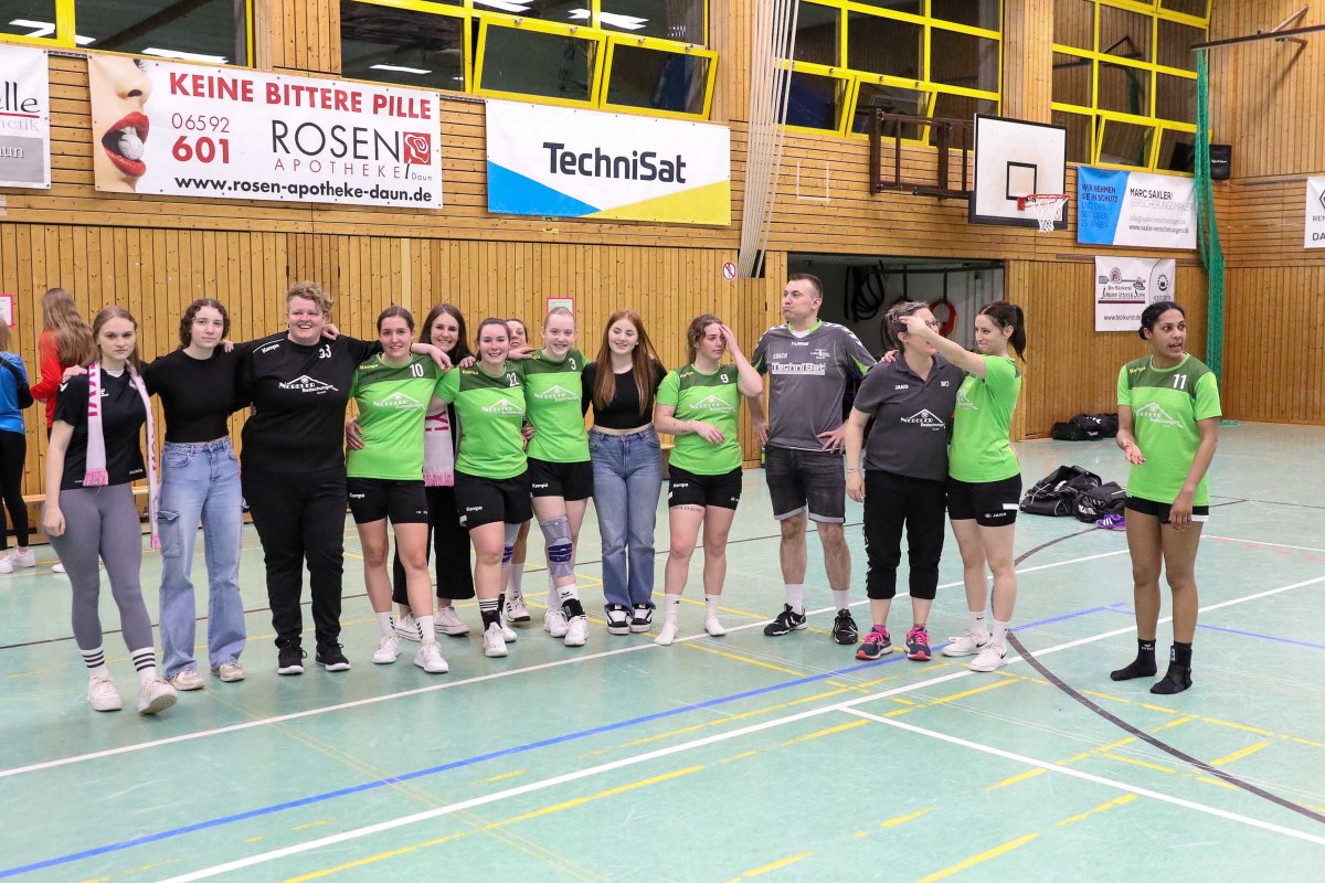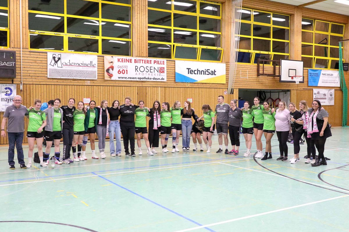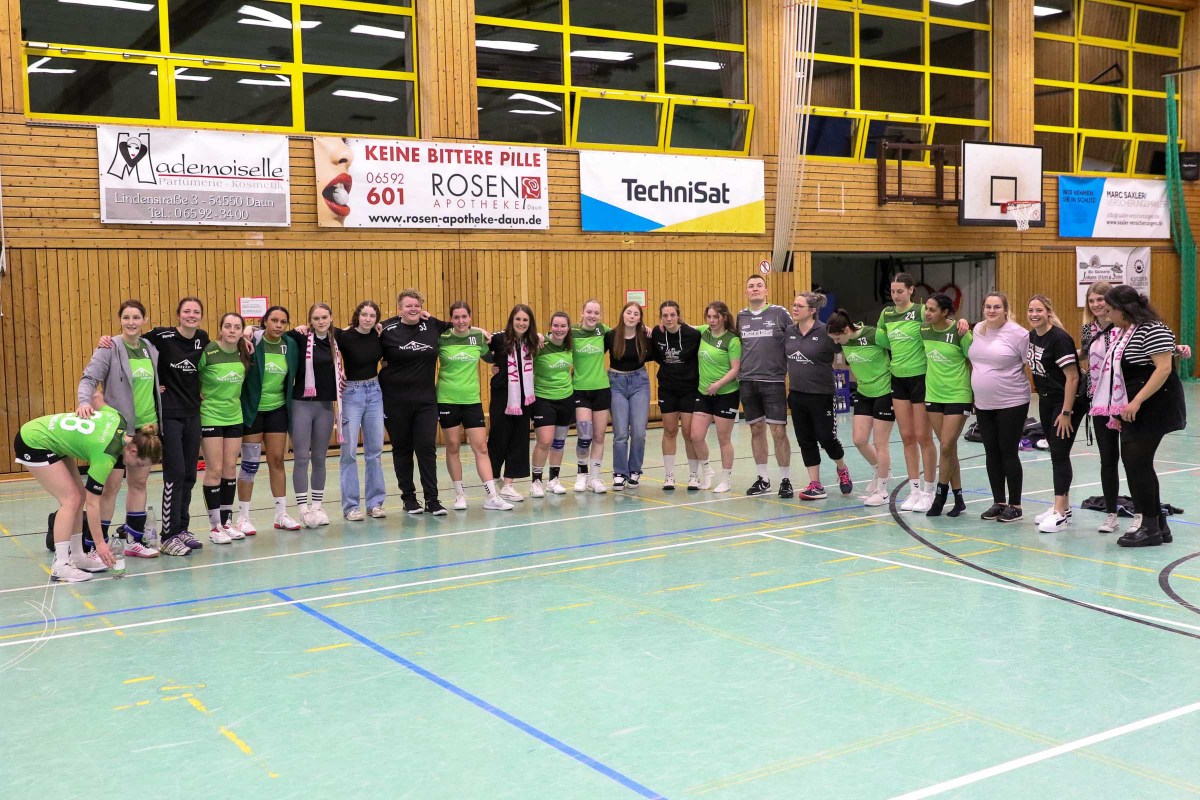 Mit dem Sieg im letzten Heimspiel machten die Dauner Frauen ihrem scheidenden Trainer Heinz Hammann ein tolles Abschiedsgeschenk! Ein spannendes Spiel hatten beide Trainer vorhergesagt und das war es zumindest in der ersten Hälfte! Dabei hatten die Gastgeberinnen bis 6:5 (12.) die Nase vorne, doch dann drehte das Team aus Wittlich mit drei Treffern in Folge zum 6:8 (19.) die Begegnung. Doch Daun zeigte sich wenig beeindruckt und die Mannschaft des scheidenden Trainers Heinz Hammann legte jetzt vier Tore in Folge zur 10:8 (25.) Führung nach! Zur Pause führte Daun denkbar knapp mit 12:11!
