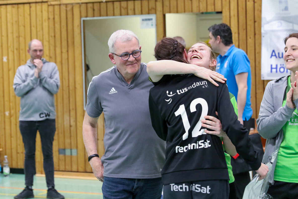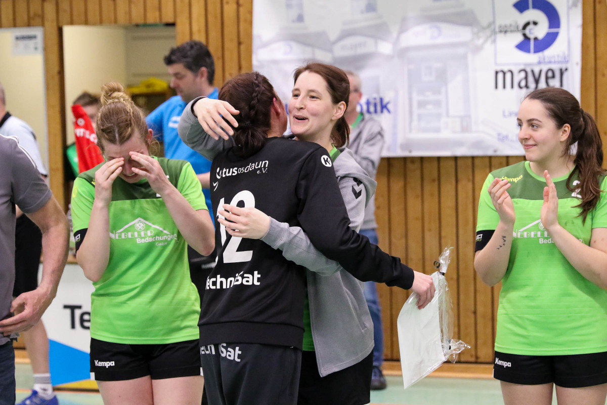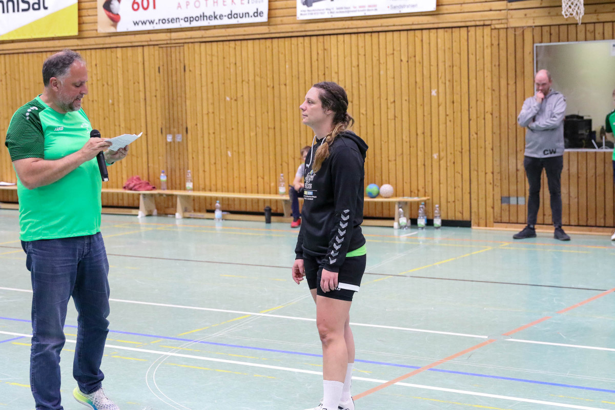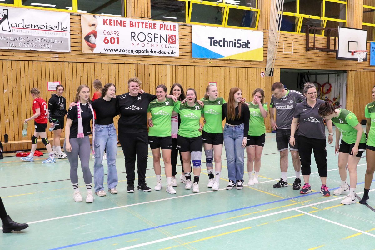 Mit dem Sieg im letzten Heimspiel machten die Dauner Frauen ihrem scheidenden Trainer Heinz Hammann ein tolles Abschiedsgeschenk! Ein spannendes Spiel hatten beide Trainer vorhergesagt und das war es zumindest in der ersten Hälfte! Dabei hatten die Gastgeberinnen bis 6:5 (12.) die Nase vorne, doch dann drehte das Team aus Wittlich mit drei Treffern in Folge zum 6:8 (19.) die Begegnung. Doch Daun zeigte sich wenig beeindruckt und die Mannschaft des scheidenden Trainers Heinz Hammann legte jetzt vier Tore in Folge zur 10:8 (25.) Führung nach! Zur Pause führte Daun denkbar knapp mit 12:11!