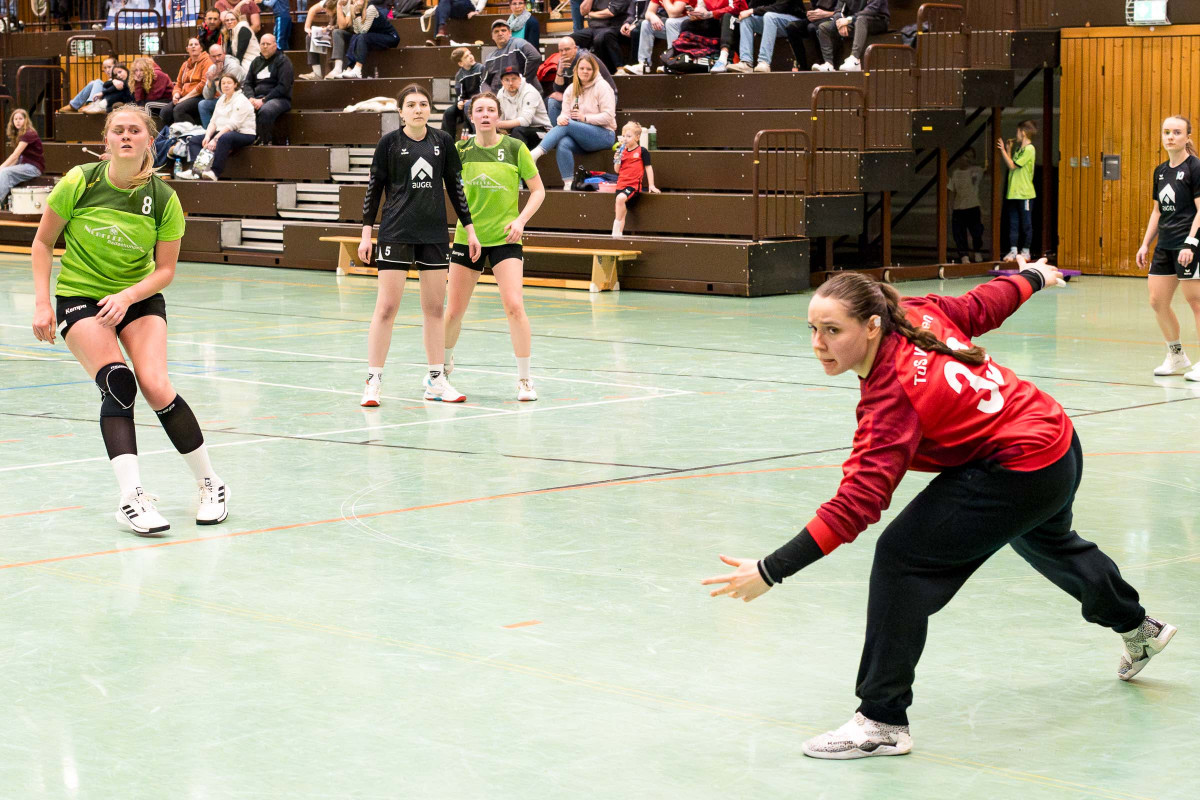 Daun gewinnt das vier-Punkte Spiel gegen den Tus Weibern und setzt sich weiter vom Tabellenletzten aus Bad Ems, der in Trier ein klare Niederlage einstecken musste, ab. Das Team von Trainer Can Steuernagel ließ lediglich die 1:2 Führung der Gäste (6.) zu, drehte das Spiel über 4:2 (11.) und verteidigte die knappe Führung bis zum 7:6 (18.) Mia von Koten und Kathi Schick sowie Lena Kretzer sorgten mit ihren Treffern dann für den beruhigenden vier Tore Vorsprung zum 10:6 (26.) den man mit in die Pause nahm. Die Anfangsphase der zweiten Hälfe aber verschlief das Steuernagel Team und das bestrafte Weibern mit dem Ausgleich zum 11:11 (34.) und hatte jetzt das Momentum auf seiner Seite. Doch Daun fing sich zum richtigen Zeitpunkt und erneut war es Lena Kretzer, die Verantwortung übernahm und ihre Mannschaft in Führung warf. Die Treffer von Mia van Koten, Finja Katzer, Kathi Schick und erneut Lena Kretzer sollten beim 16:11 (42.) für die Auszeit der Gäste sorgen. Doch jetzt verteidigte das Dauner Team die Führung, Steuernagel nahm beim 18:13 (46.) die Auszeit und spätestens beim 22:15 (54.) war die Messe in Daun zugunsten der Heimmannschaft gelesen.
